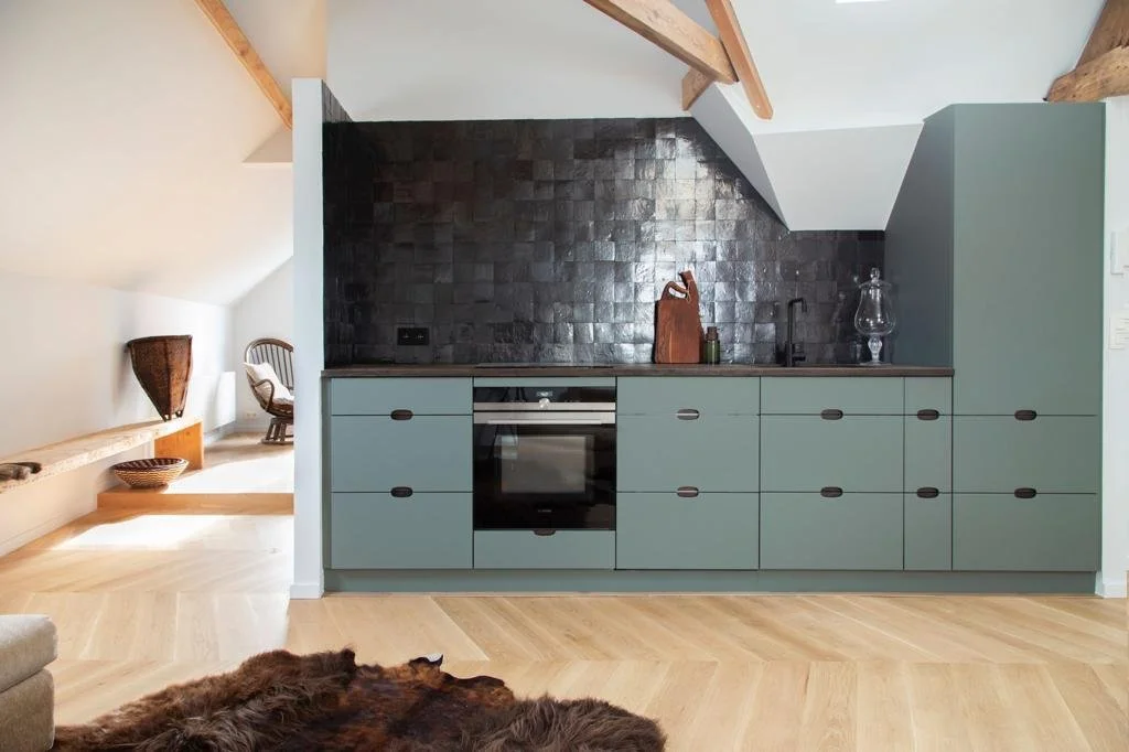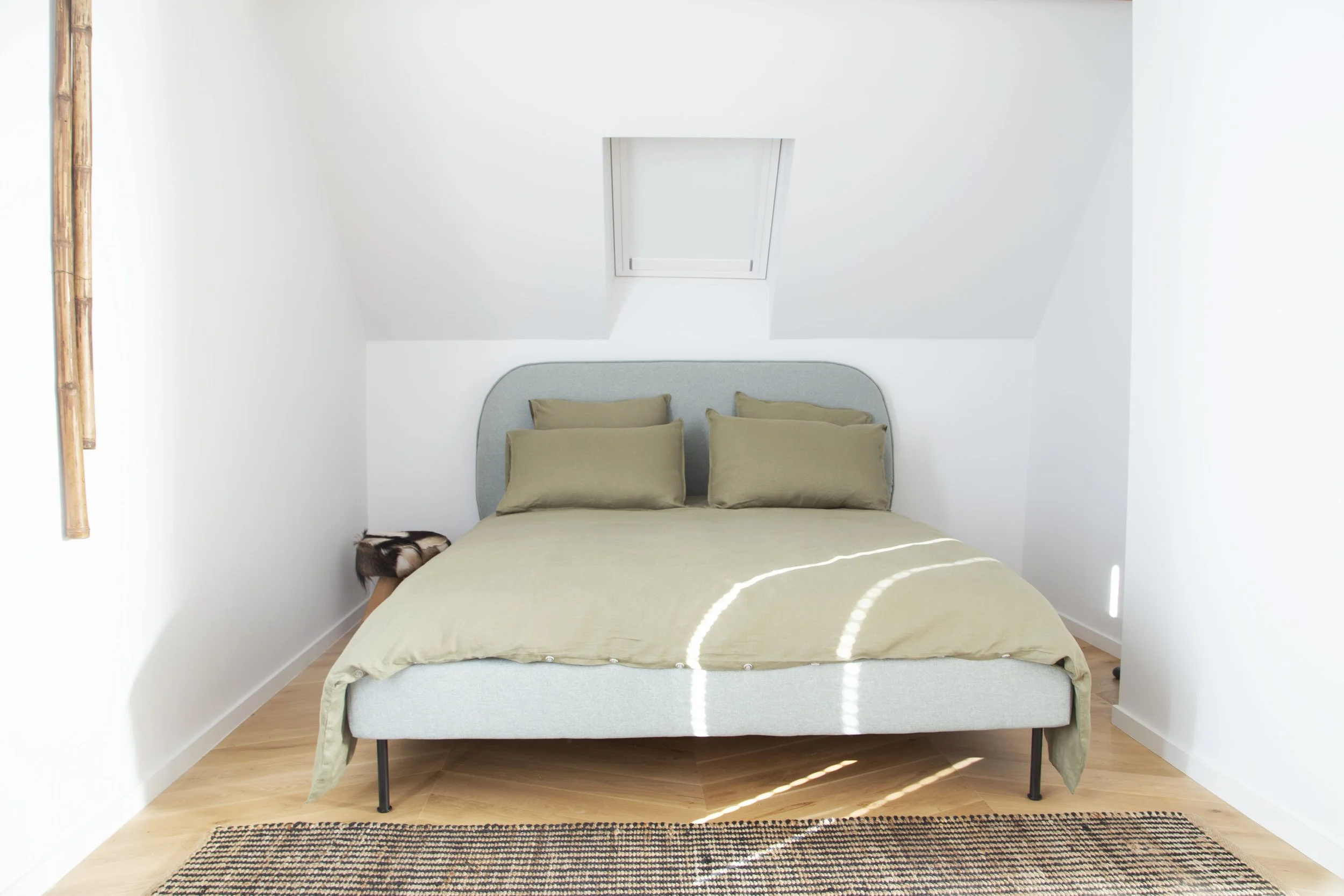 Our top apartment has been completely renovated and boasts high ceilings with original wooden beams. The earthy color palette and carefully decorated details create a peaceful and inviting atmosphere. Whether you're in town for business or pleasure, this is the perfect home away from home.